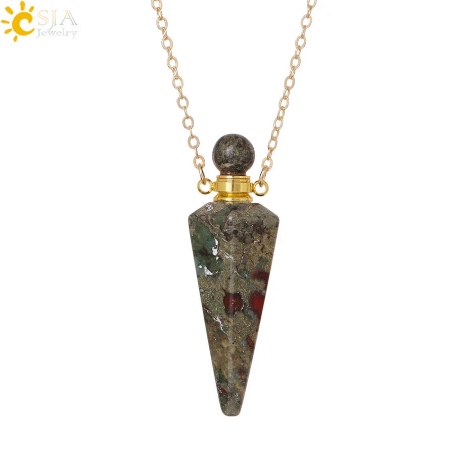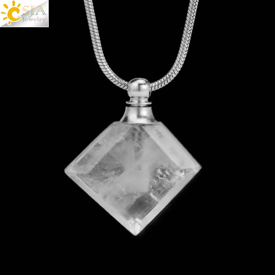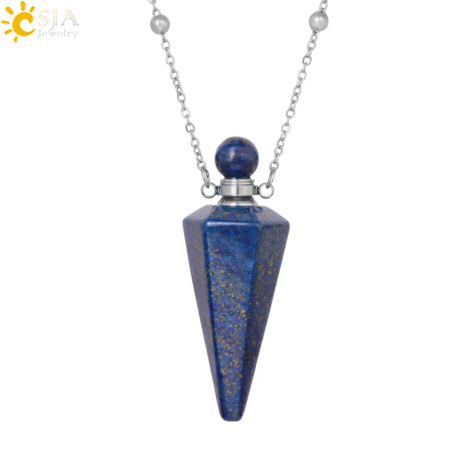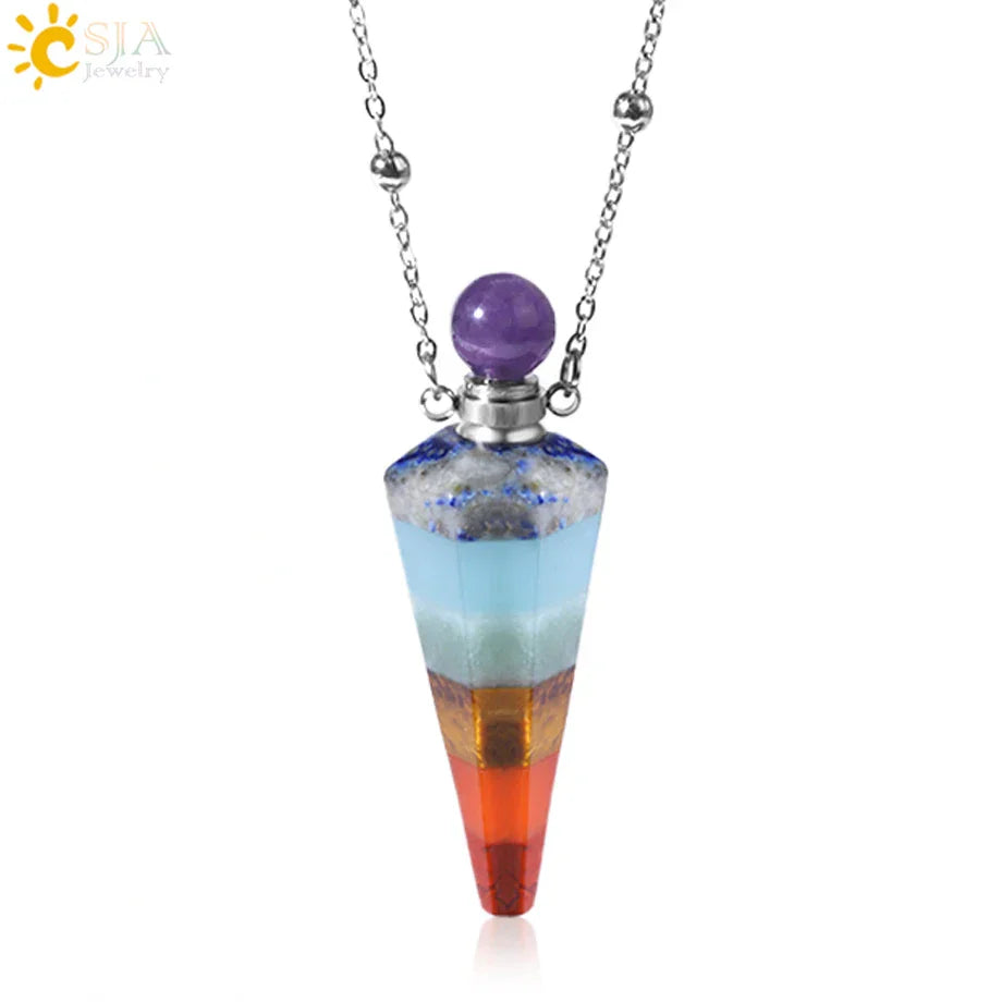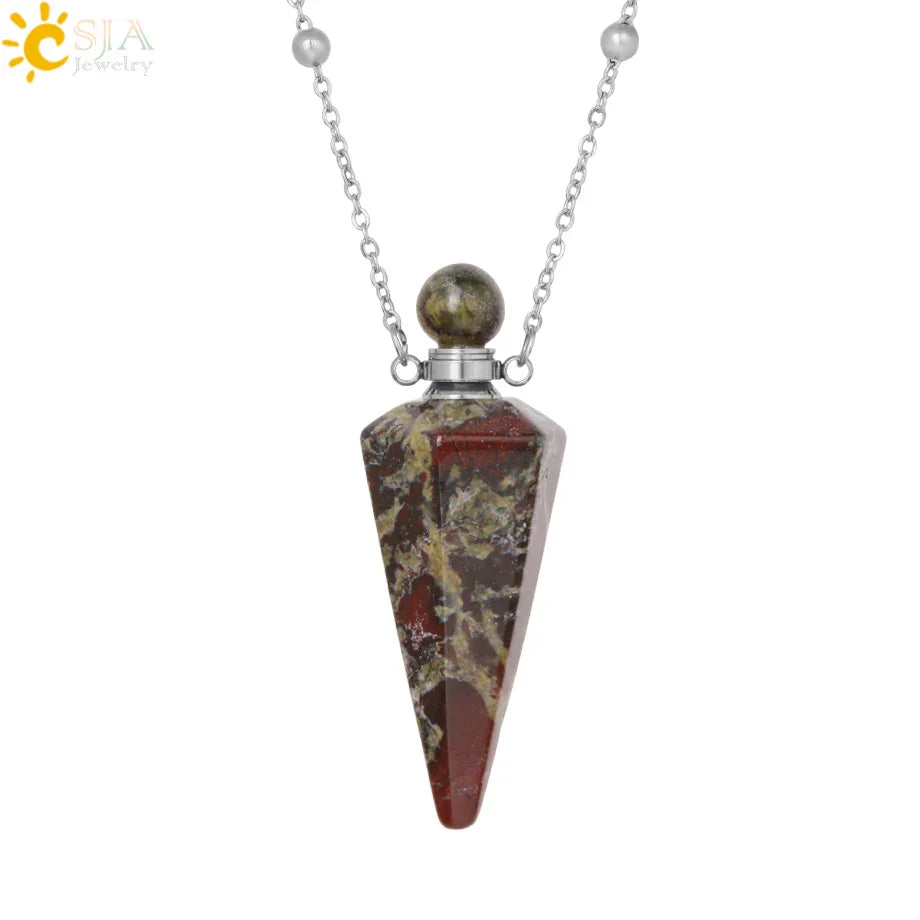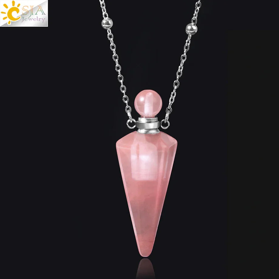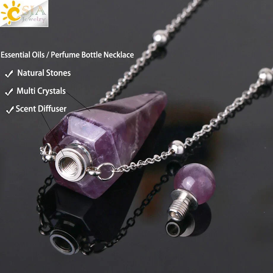 • Dual-purpose design: perfume/essential oil vial and healing crystal pendant