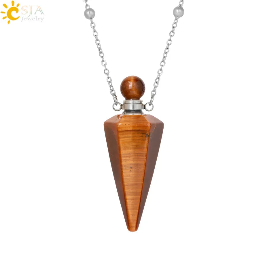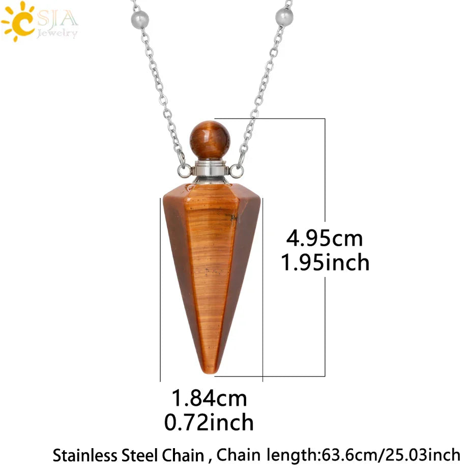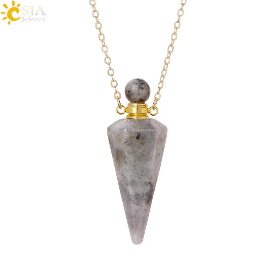 Natural Stone Cone Perfume Bottle Necklace – Clear Quartz Crystal Pendant & Essential Oil Diffuser