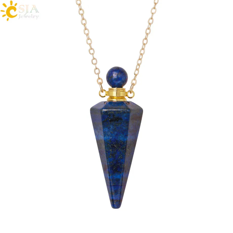 Carry your favorite scent and healing energy wherever you go with this Natural Stone Cone Perfume Bottle Necklace, beautifully carved from Clear Quartz. A unique combination of spiritual wellness and aromatherapy in one elegant pendant.